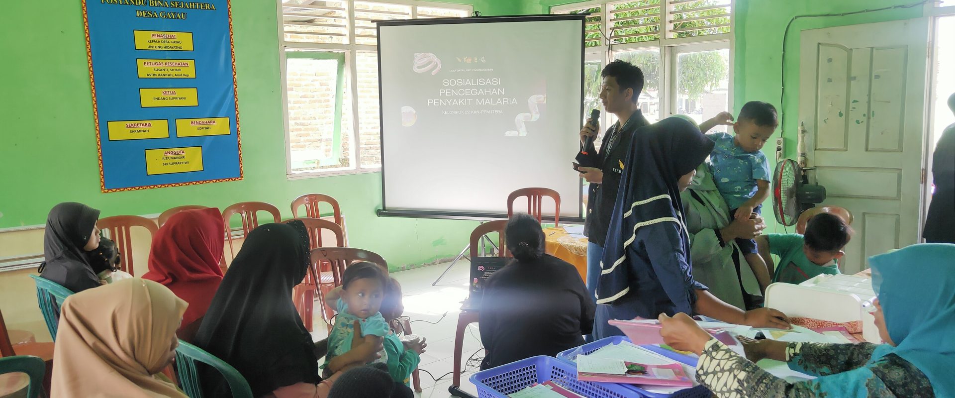 Kegiatan program kerja KKN mahasiswa Institut Teknologi Sumatera (ITERA) melaksanakan program kerja sosialiasisi pencegahan penyakit malaria di Desa Gayau, Kecamatan Padang Cermin, Kabupaten Pesawaran, Provinsi Lampung. Pencegahan penyakit malaria disosialisasikan kepada masyarakat khususnya ibu-ibu dengan harapan, ibu-ibu sebagai garda terdepan dalam melindungi keluarga dari penyakit malaria.